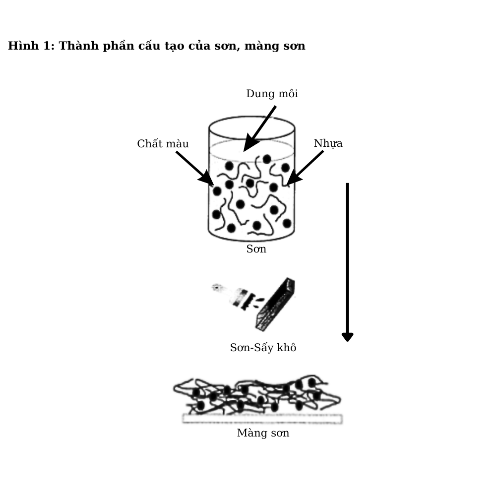 Các thành phần chính của sơn bao gồm: Nhựa, chất tạo màu, dung môi, và rất nhiều lại phụ gia khác nhau.