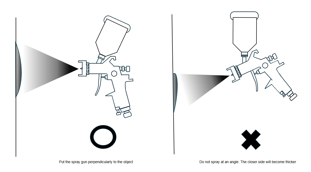 - Positioning the Gun: Keep the spray gun perpendicular to the surface being painted, holding the air hose in one hand to avoid contact with the object.