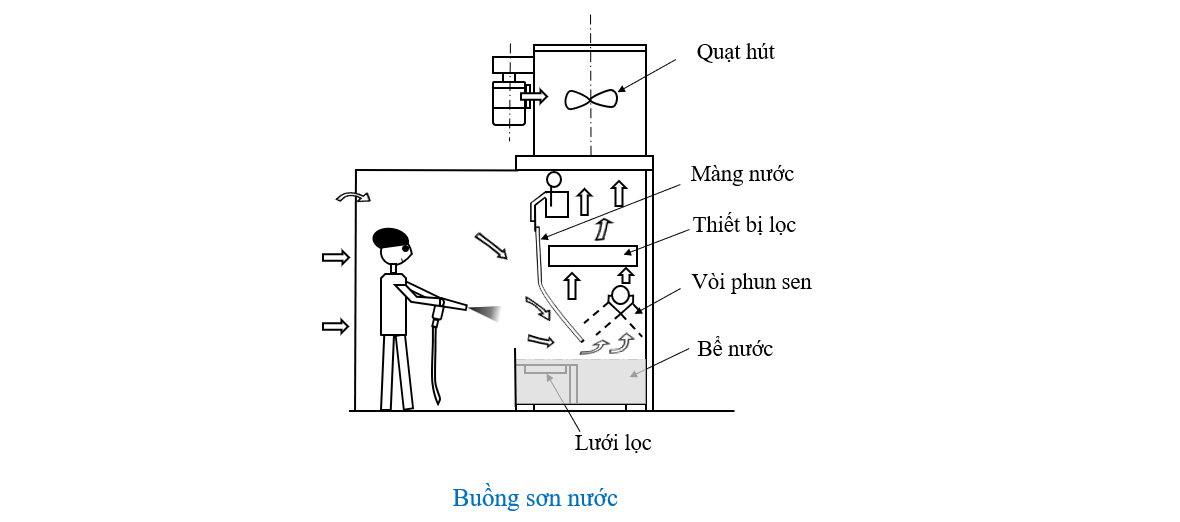Trong công đoạn sơn nước, việc loại bỏ bụi sơn và các dung môi hữu cơ bay hơi là rất quan trọng việc giữ an toàn và vệ sinh. Để thực hiện điều này, việc lắp đặt buồng sơn nước được trang bị bộ phận lọc khí, giúp cấp và thoát khí trong khi sơn là không thể thiếu.